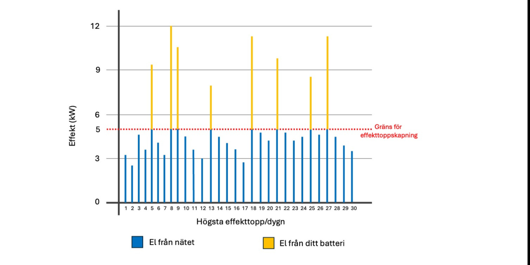 Genom att använda ett batterilager som kan jämna ut effekttopparna kan du sänka dina elkostnader.